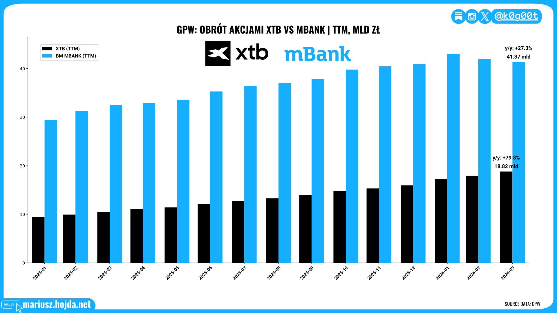 I dlatego ten obraz jest dużo ciekawszy niż proste „XTB rośnie, mBank jest tradycyjny”.