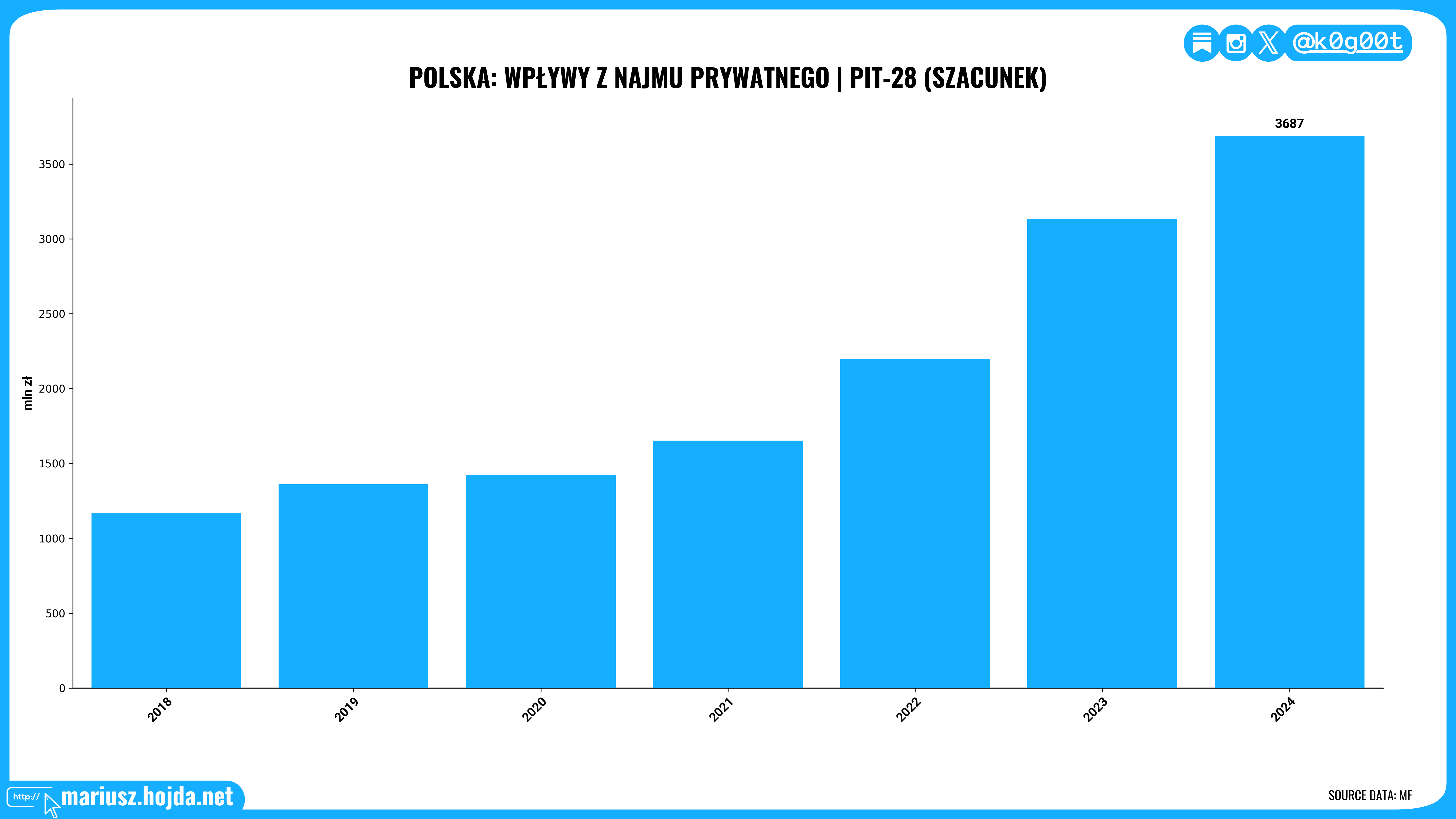 To jest bardzo mocna liczba. W 2024 szacowane wpływy z najmu prywatnego były: