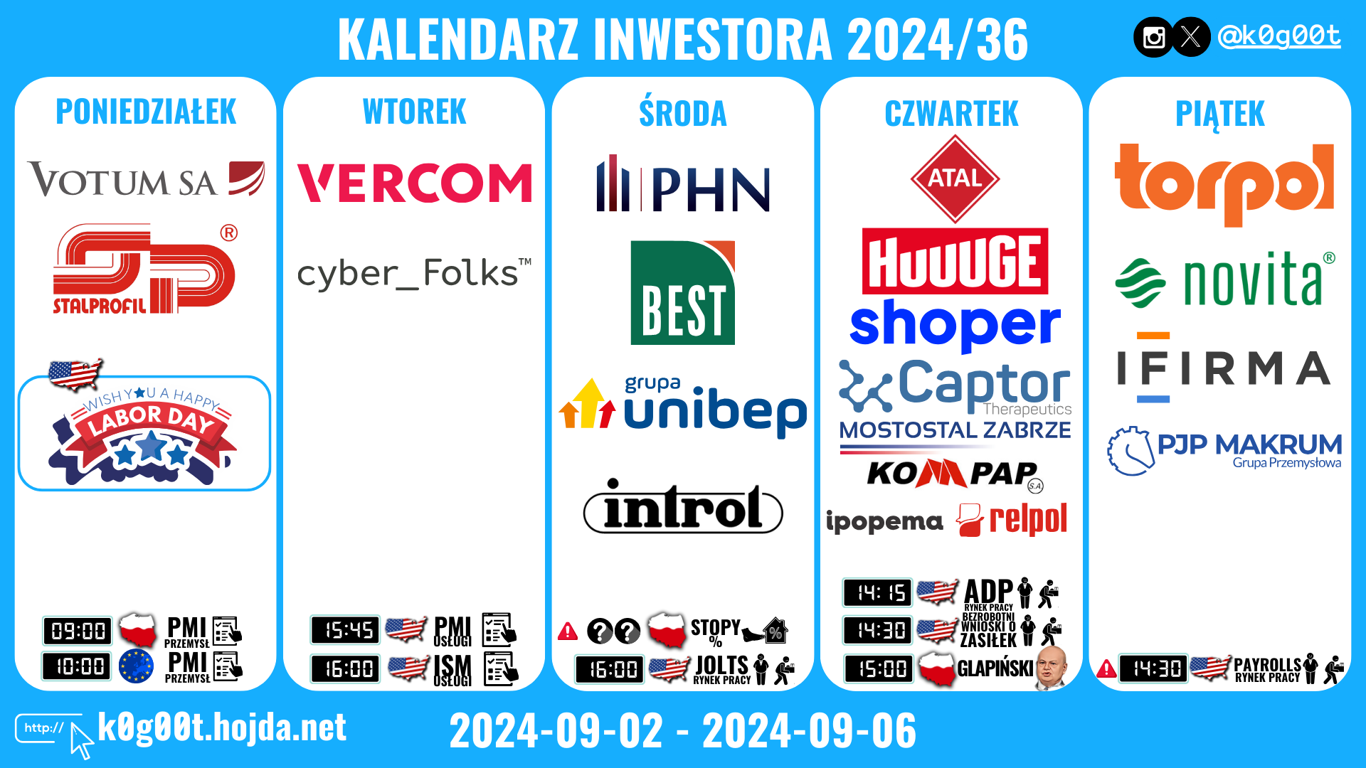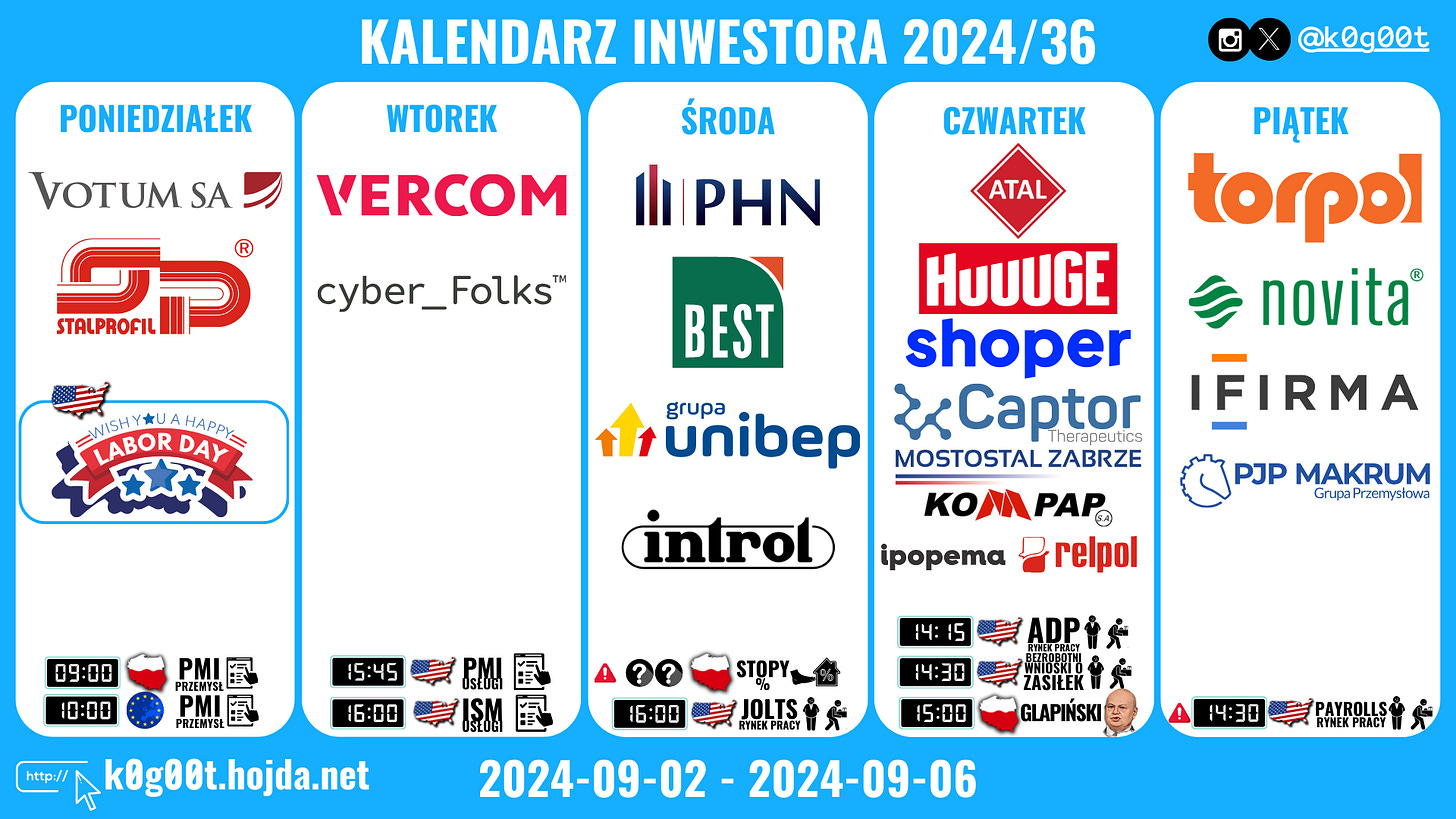 Witaj w kolejnym wydaniu kalendarza inwestora. W Stanach Zjednoczonych tydzień będzie krótszy z powodu Święta Pracy, co może oznaczać mniejsze obroty na rynku. Mimo to nie zabraknie istotnych danych – od środy ruszą odczyty z rynku pracy, które są pod lupą FED. W środę pojawi się raport JOLTS, w czwartek dane ADP, a zakończymy tydzień w piątek, publikacją Payrolls. Dodatkowo, w tym tygodniu poznamy wyniki ankiet PMI/ISM zarówno dla usług, jak i przemysłu.