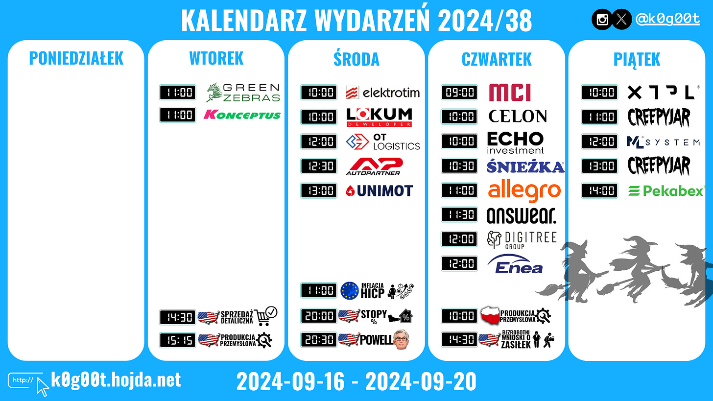 Dodatkowo ten tydzień to zamykanie derywatów – "trzy wiedźmy" 🧙♀️ mogą dodać nam zmienności im bliżej piątku.