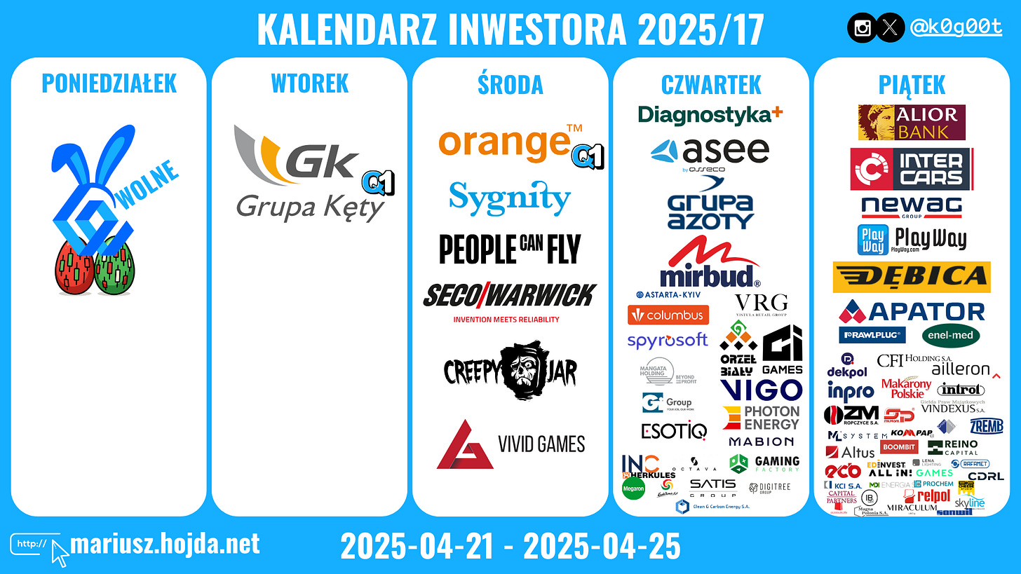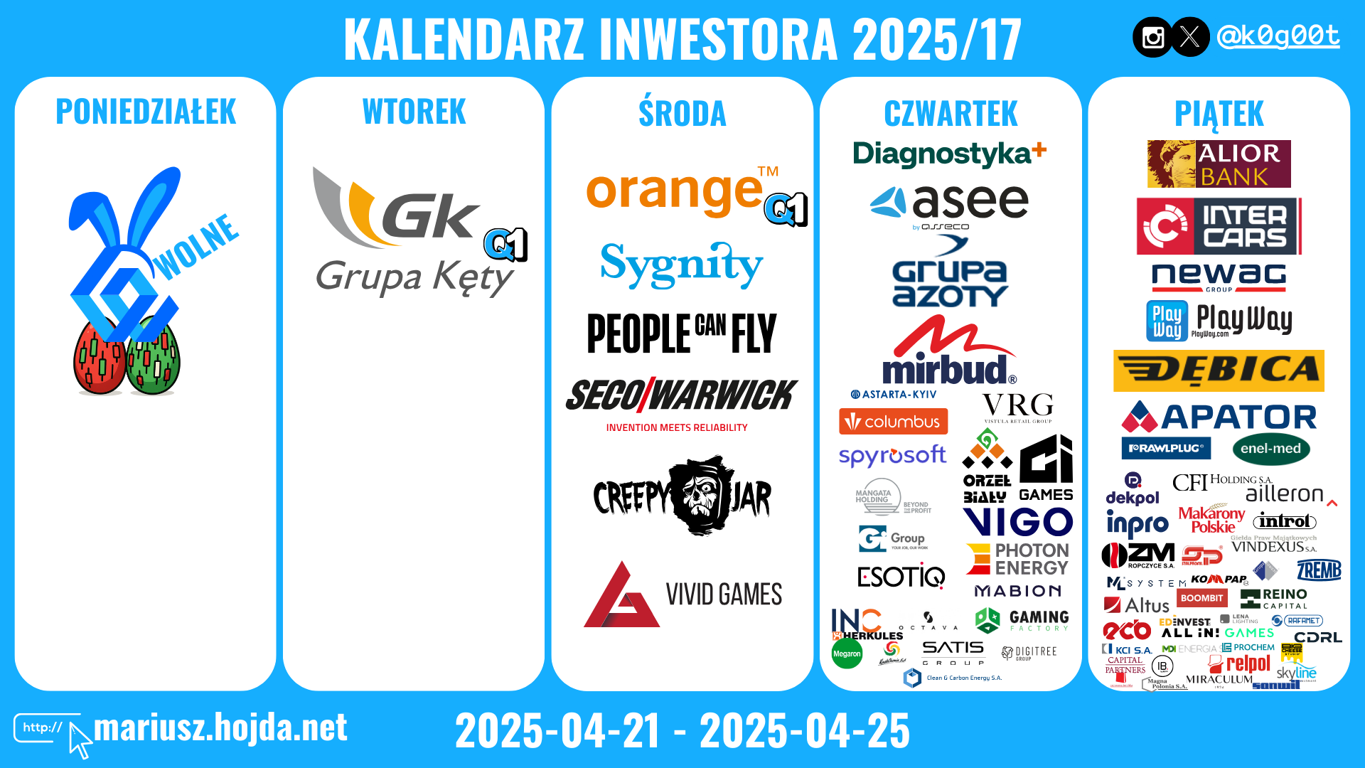 09:30 - Alior Bank - 📺 - webcast10:00 - Asseco SEE - 📺 - webcast