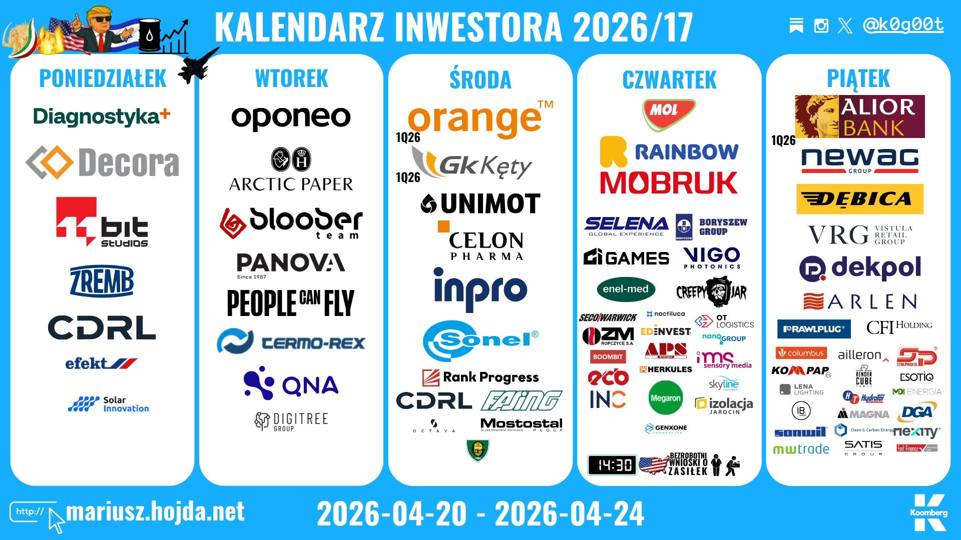 ☕ Jeśli doceniasz moją pracę, rozważ wsparcie #kalendarzinwestora – każda kawa to dla mnie sygnał, że to, co robię, ma sens. W podziękowaniu otrzymasz prezent – czasowy dostęp do Koomberg 🎁