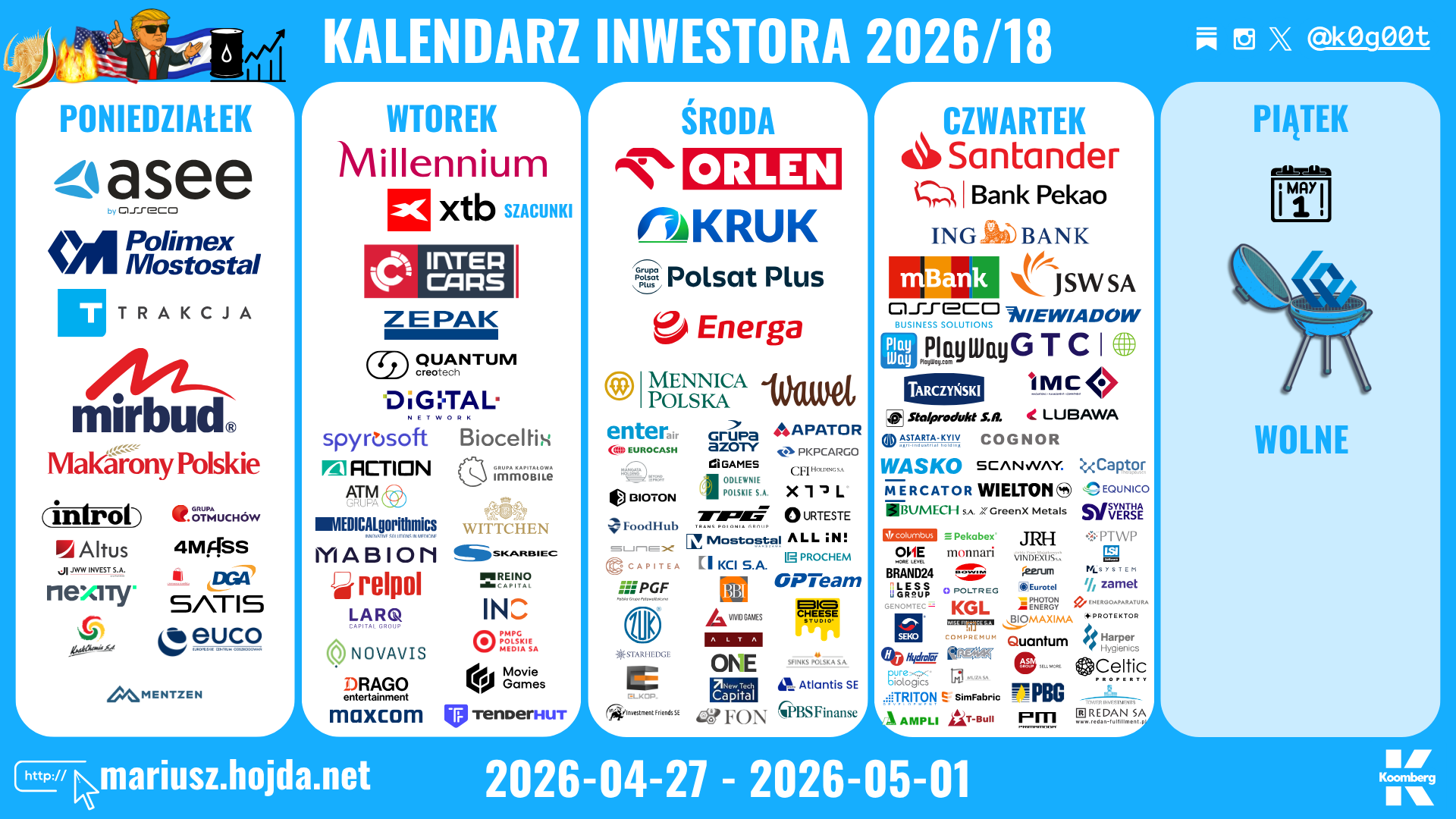☕ Jeśli doceniasz moją pracę, rozważ wsparcie #kalendarzinwestora – każda kawa to dla mnie sygnał, że to, co robię, ma sens. W podziękowaniu otrzymasz prezent – czasowy dostęp do Koomberg 🎁