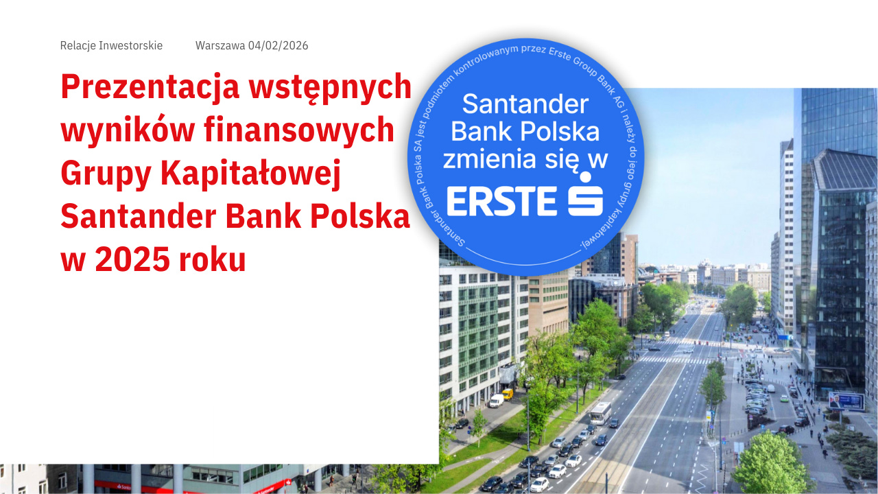 Santander Bank Polska omówił niezaudytowane wyniki za 2025 r. (z perspektywą po sprzedaży SCB), kontekst wejścia do grupy Erste oraz priorytety na 2026 r., w tym rebranding i integrację operacyjną. W trakcie spotkania zarząd odnosił się do zyskowności, kapitału, kosztów ryzyka, marży odsetkowej i polityki dywidendowej. [1][2][3]
