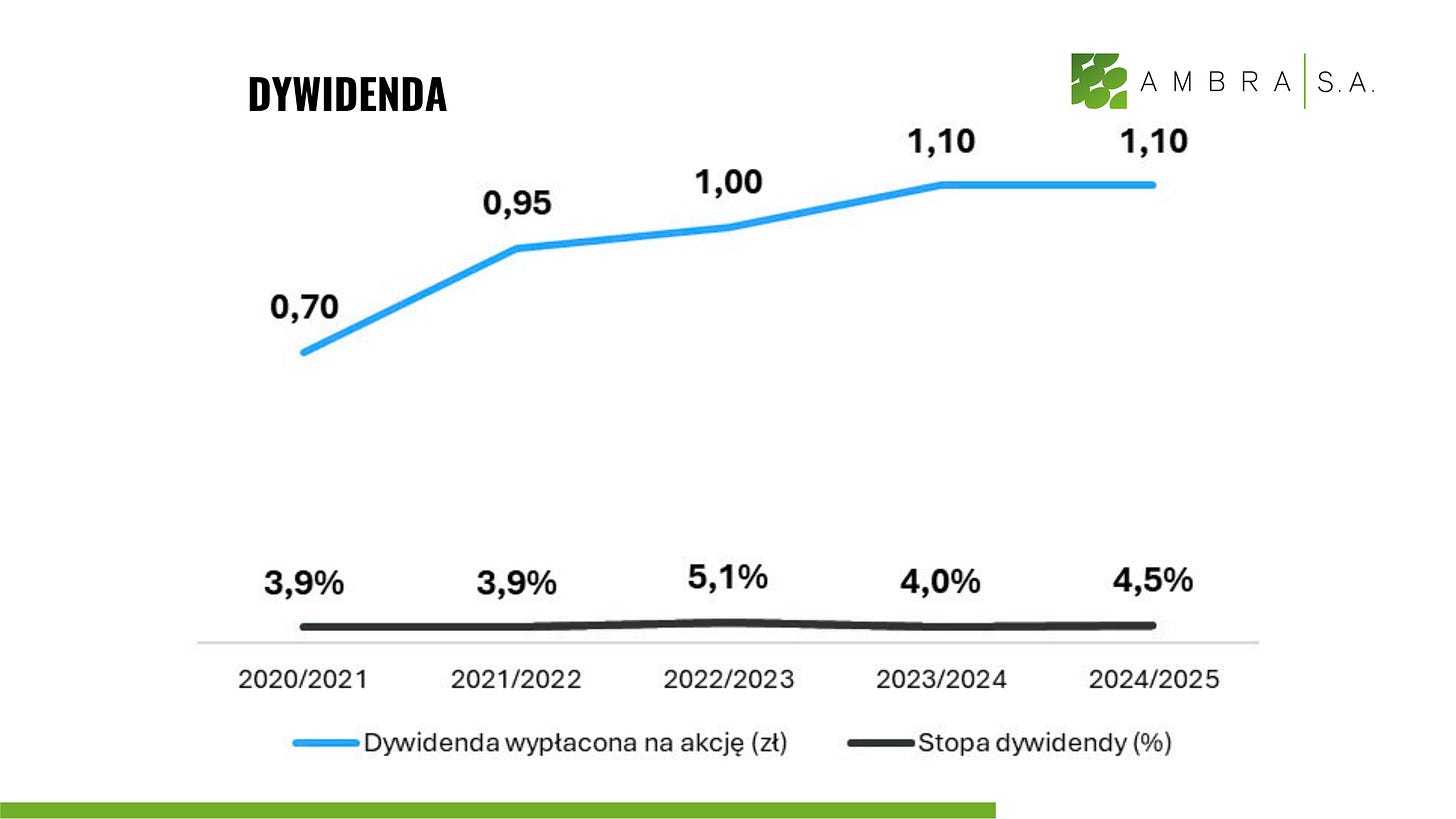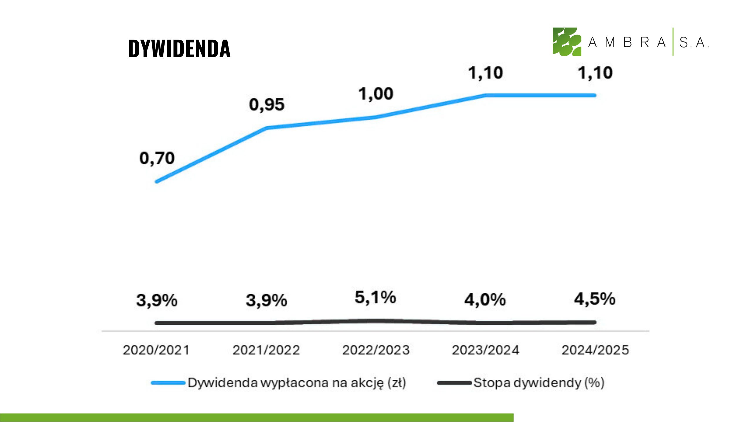 Dywidenda: Zarząd zarekomendował utrzymanie dywidendy na poziomie 1,10 zł na akcję, co jest zgodne z polityką stabilnego zwrotu dla akcjonariuszy.[2][1]