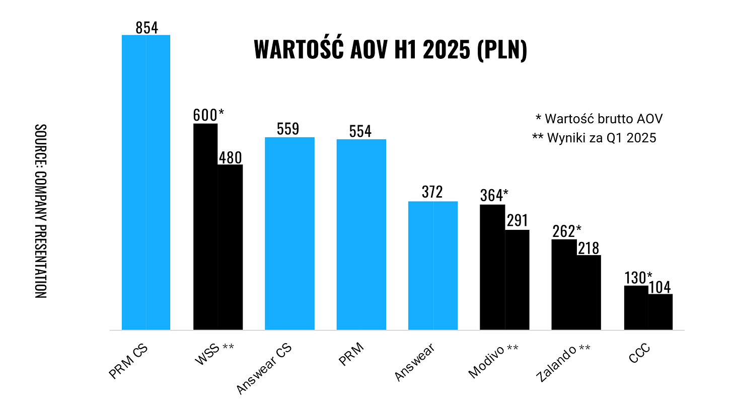 Średnia wartość koszyka (AOV) wzrosła do 385 zł w H1 2025 z 378 zł w H1 2024.[2]
