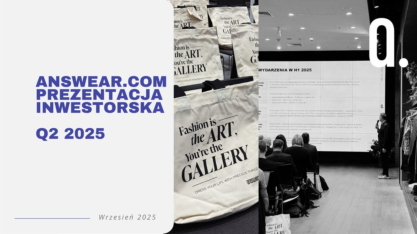 Stacjonarna konferencja Answear.com poświęcona była prezentacji wyników finansowych za drugi kwartał i pierwsze półrocze 2025 roku. Spółka jest platformą e-commerce z branży modowej, działającą na 12 rynkach Europy Środkowo-Wschodniej. Głównym celem spotkania było omówienie powrotu firmy na ścieżkę rentownego wzrostu po okresie intensywnych inwestycji w repozycjonowanie marki w kierunku segmentu premium.[1]