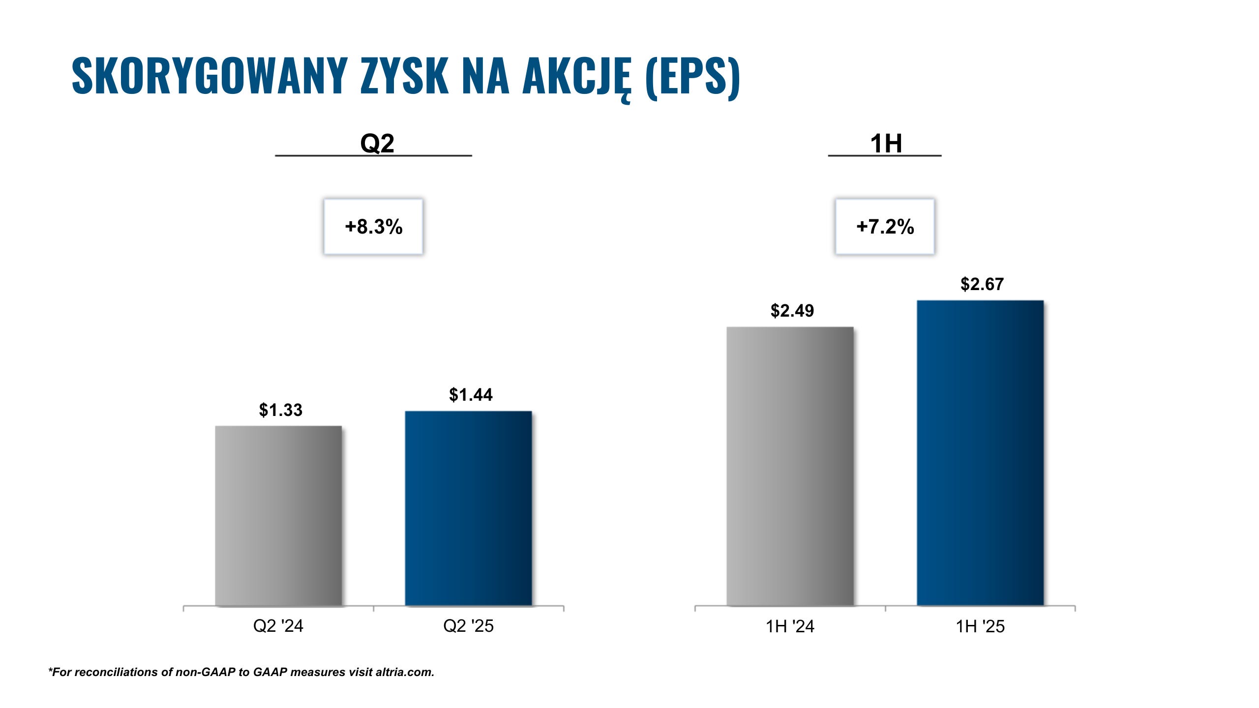 Skorygowany zysk na akcję (EPS): Wzrost o 8,3% do 1,44 USD w drugim kwartale oraz o 7,2% do 2,67 USD w pierwszej połowie roku [1][2].