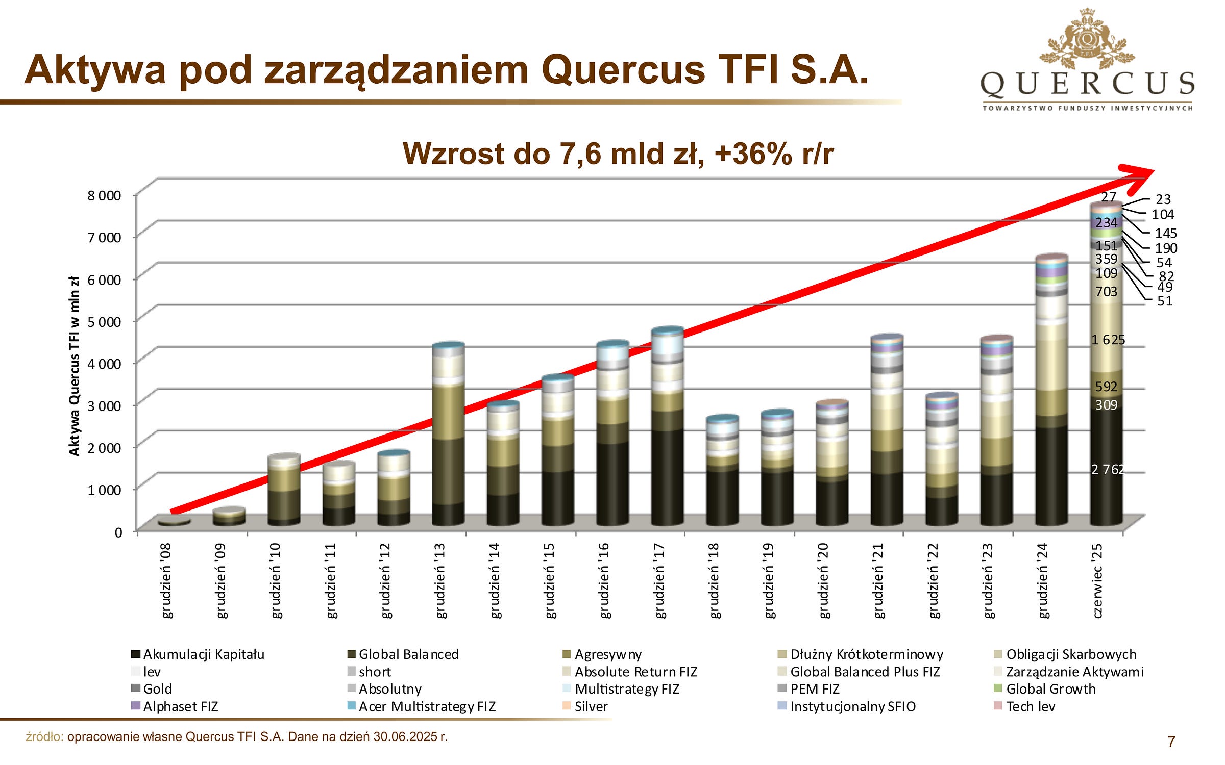 Odpowiedź: Kluczowe są wyniki inwestycyjne. Zarząd podkreślił, że wybitne rezultaty funduszy dłużnych i mieszanych (Quercus Absolutny, Global Balance, Global Growth) są głównym motorem napędzającym sprzedaż.[2]